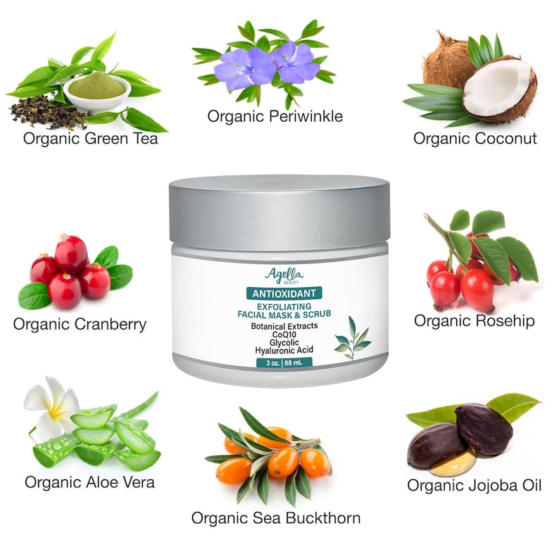 Antioxidants help keep your skin safe from free radicals, which are the dreaded cause of premature aging. While these active ingredients get to work protecting, our other ingredients get busy nourishing, firming, brightening, exfoliating and cleansing your skin. Our organic and natural Mask & Scrub is a powerful facial mask and exfoliator with glycolic ingredients which gives a tingling sensation as it cleans deep to help gently slough off dead skin cells and blackheads revealing smoother, brighter, younger looking skin. No matter how tired, stressed, broken-out, or parched your skin may be, Agella Beauty Facial Mask and Scrub is right here to help! Packed with an extreme amount of potent antioxidants and free radical superhero fighters, this miracle face mask and scrubber will give you the boost and shine your skin needs. No matter your skin type, goals or preferences you want to have the power of these high levels of antioxidants, vitamins and moisturizers on your side. Agella Beauty Organic MSM acts as an anti-inflammatory to reduce redness and breakouts. It also has skin repairing benefits that help with common downfalls including aging skin, poor complexion, acne and uneven skin. MSM is intensely moisturizing and helps skin retain its elasticity. Small batch yet powerful!